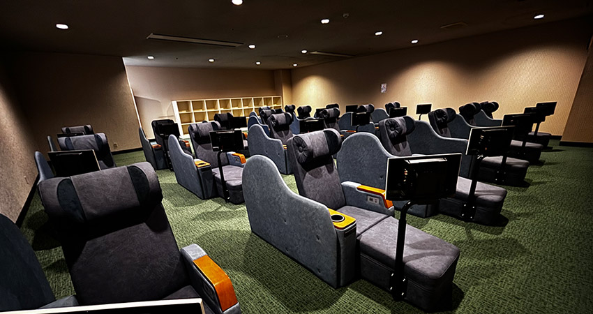リクライニングチェアが全台リニューアル! 各チェアにテレビモニター付きで充電用のアダプターもACとUSBがご使用できます。